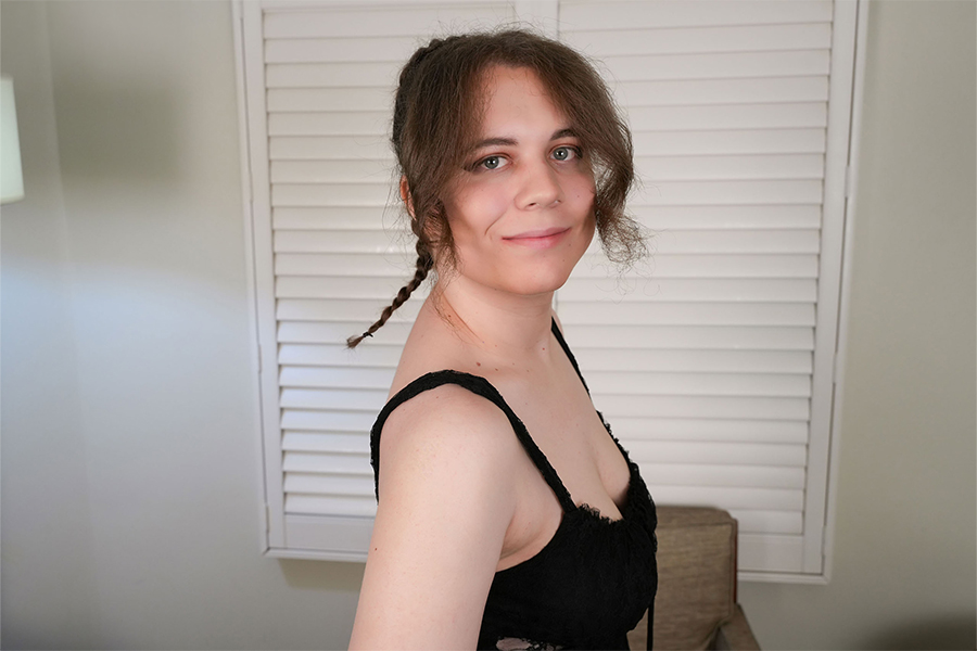 Sexy girl next door Nicole Knight made a big splash when she debuted on TS Casting Couch and we just knew we had to have her back because this girl truly is your Next Door Nympho! She comes knocking and before you know it she's naked and stroking her hard cock right there in hallway! So lay down and let Nicole rider your cock and suck you off!